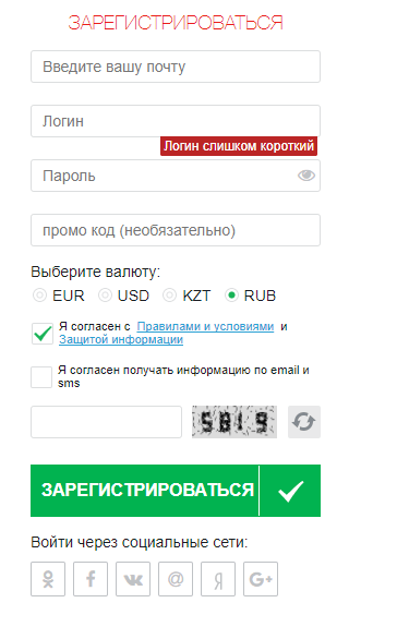 Увеличить свой начальный капитал могут все игроки, которые впервые открывают профиль в этом руме и пополняют свой счет. Чтобы претендовать на бонусные средства, сначала нужно пройти регистрацию. Для этого перейдите на официальный сайт рума. Затем на главной странице нажмите на кнопку «Регистрация» и заполните предложенную форму, она выглядит таким образом: